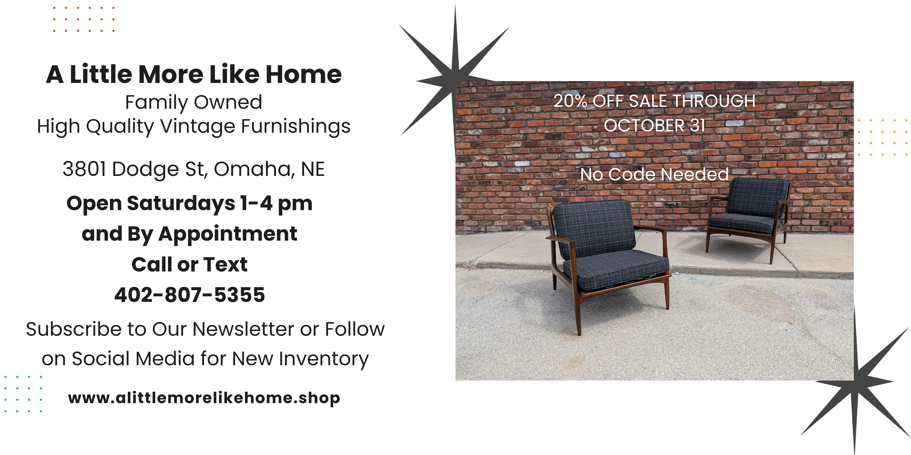 I can’t say enough good things about A Little More Like Home! Located in the heart of Omaha at 38th and Dodge, this store is a treasure trove for Mid-Century Modern (MCM) enthusiasts. I recently purchased a stunning Lane bedroom highboy and lowboy from them, and I couldn’t be happier. The pieces are made of real wood—crafted to last a lifetime—and their sleek lines perfectly embody the elegance and functionality that define the best of MCM design.