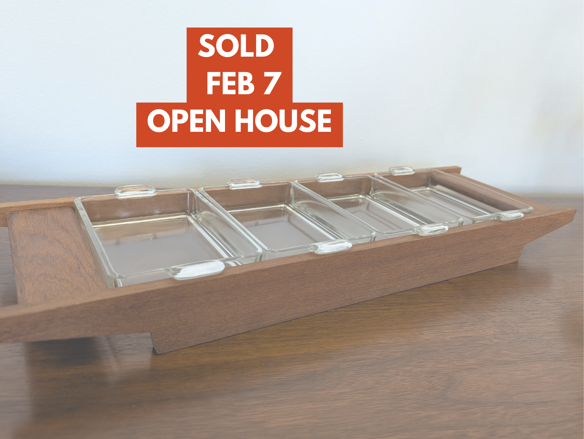 Danish Teak Serving Tray with Condiment Glass Trays