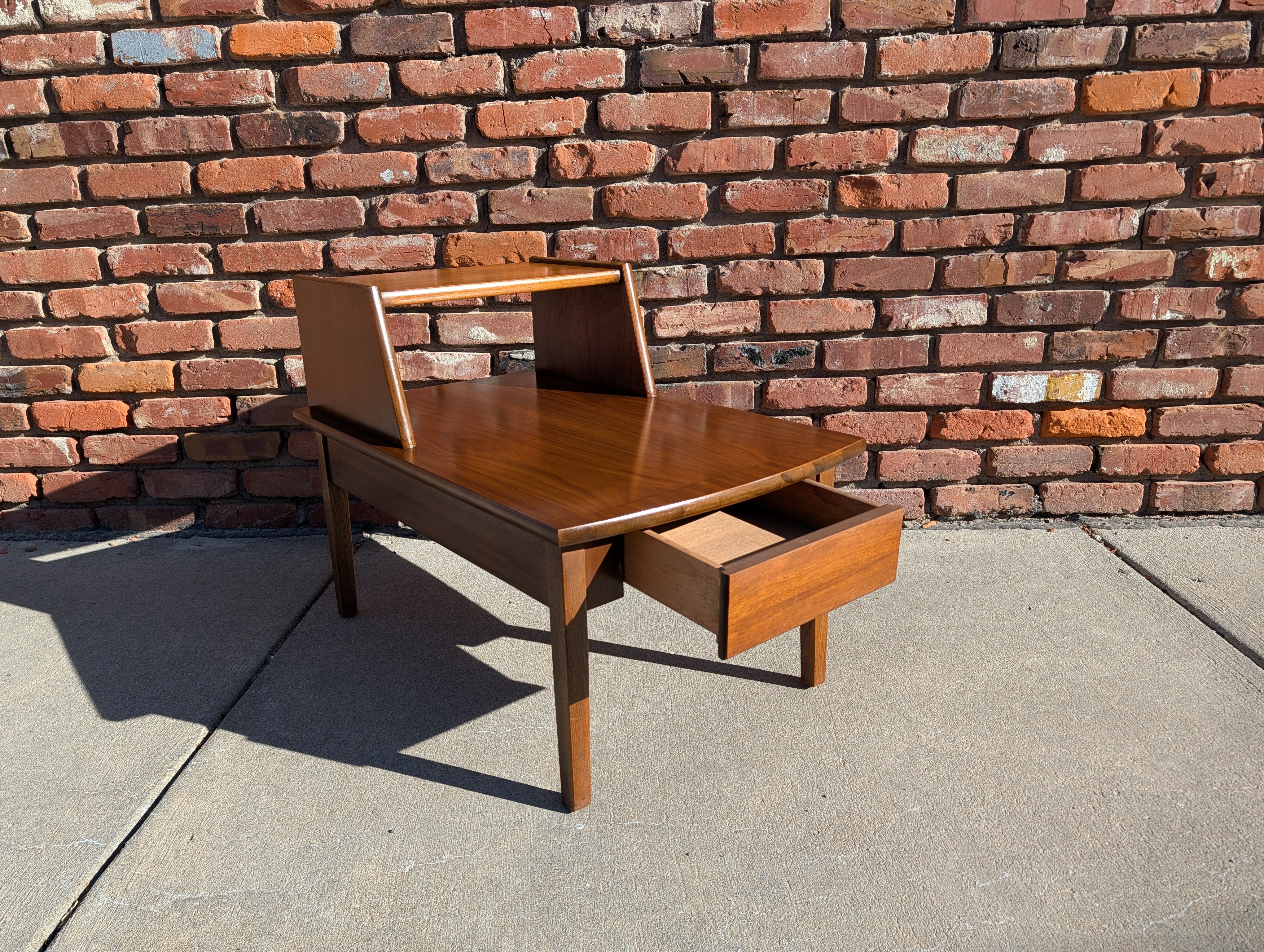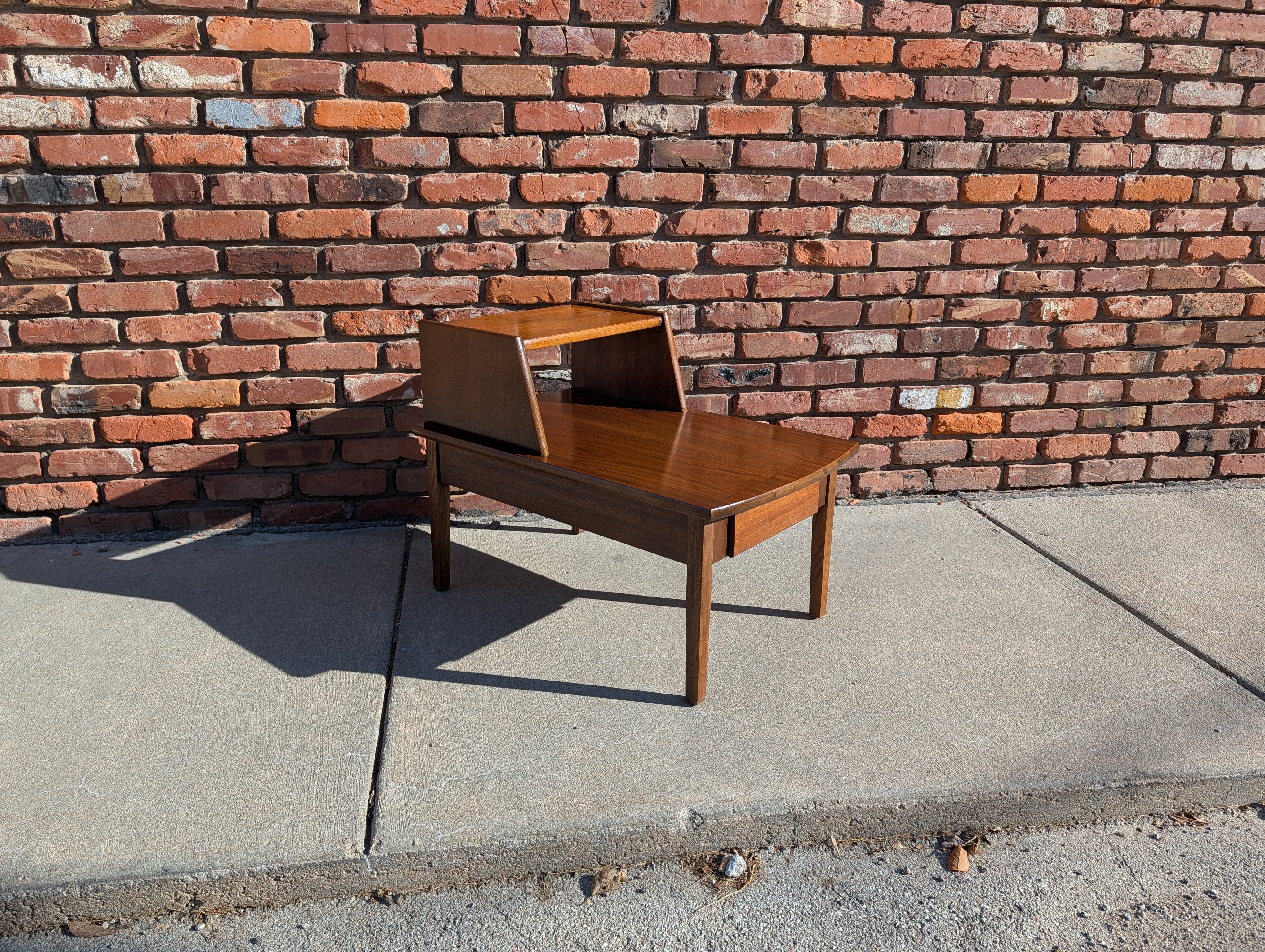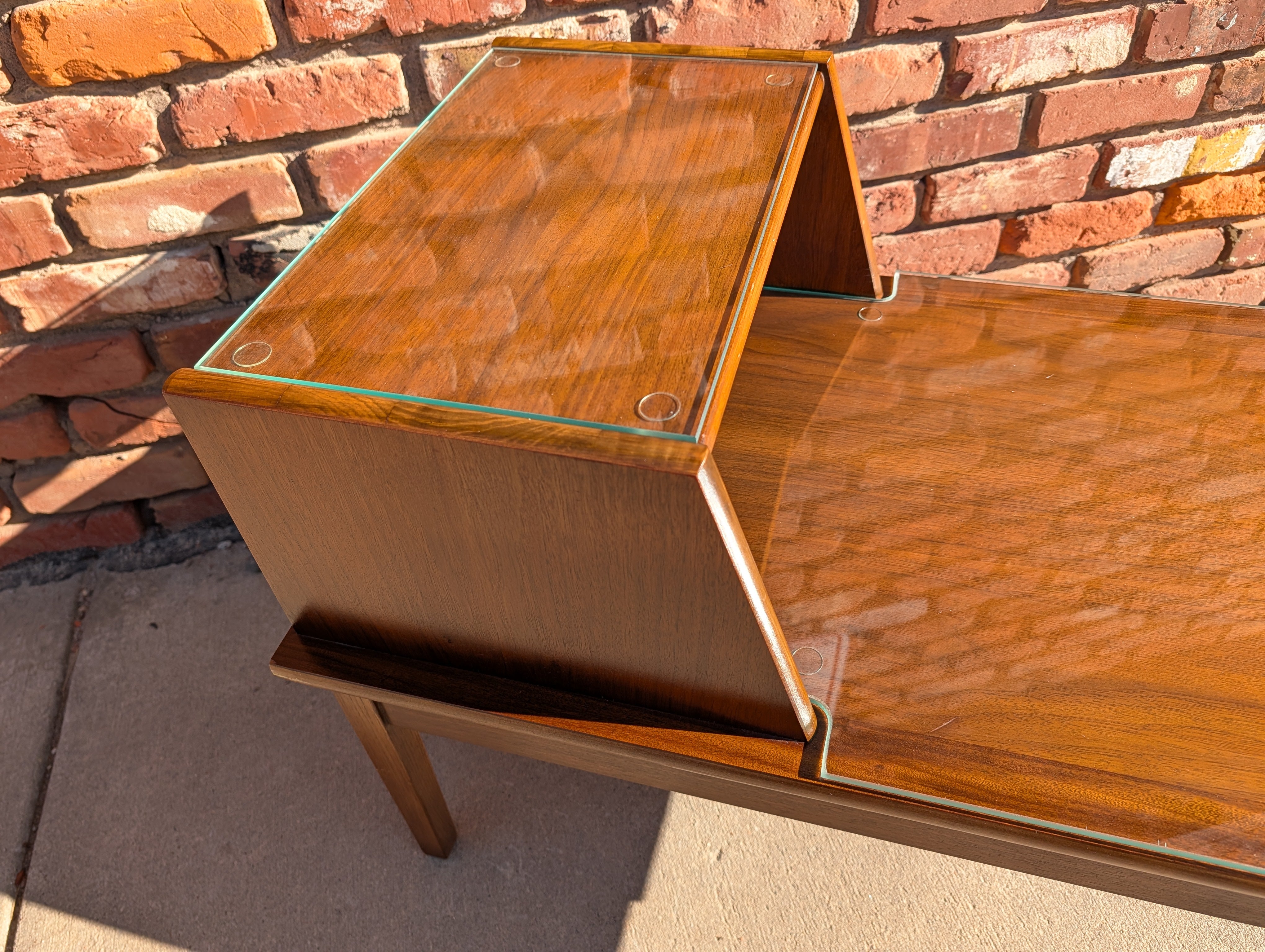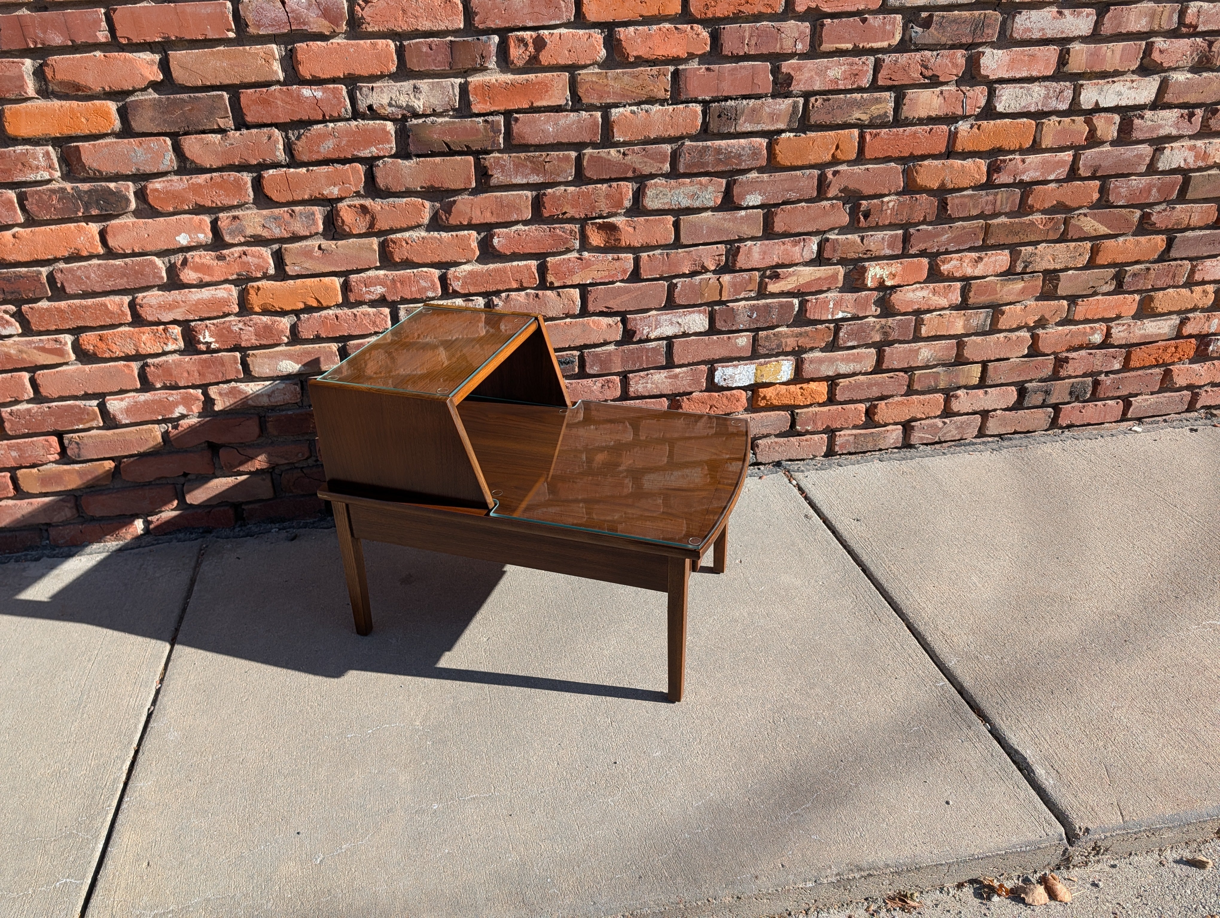 Mid Century Modern Stanley Two-Step End Table with Removable Glass Tops