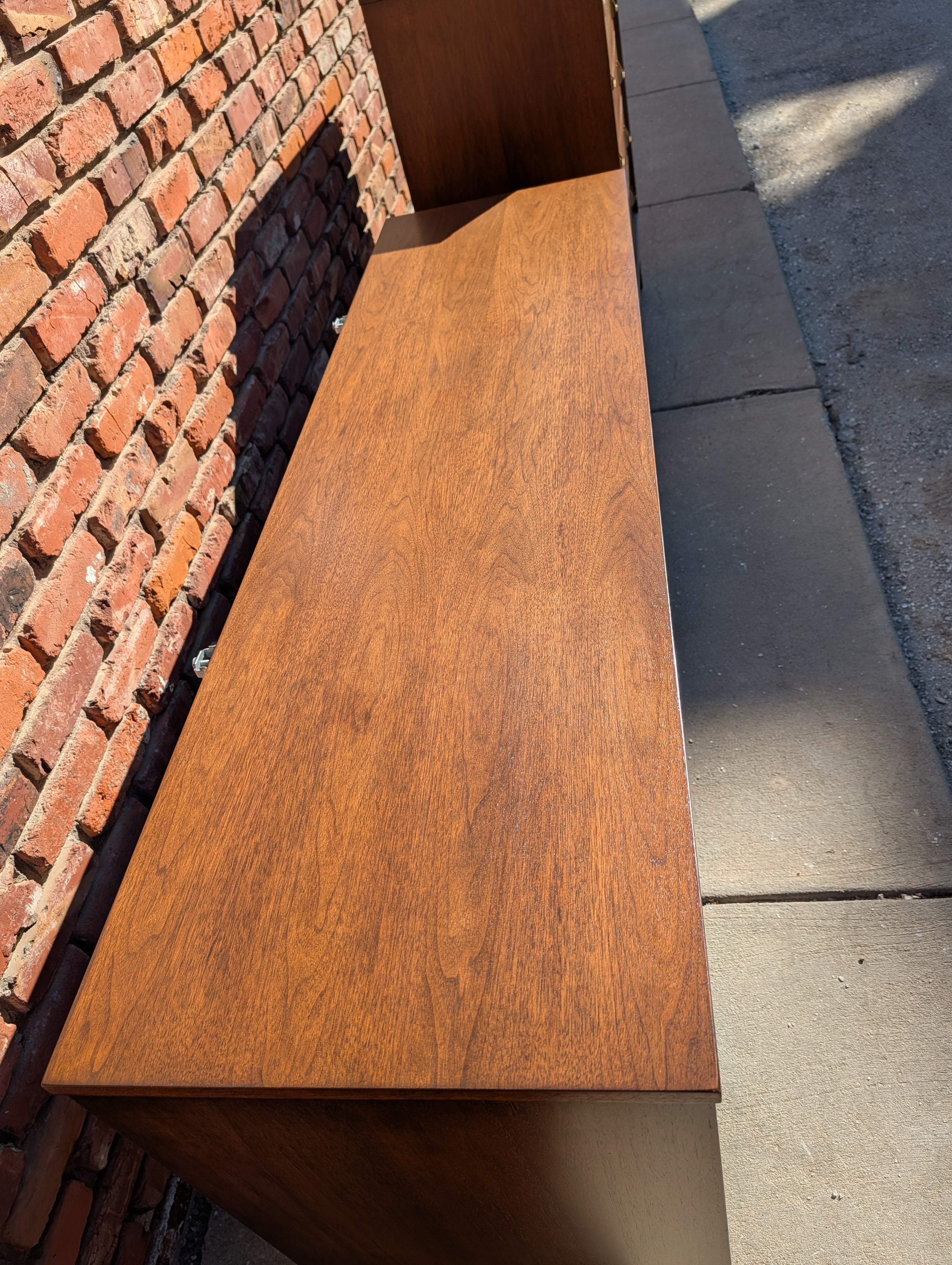 Refinished Mid Century Modern Refinished Broyhill "Brasilia" Nine Drawer Dresser with Large Mirror
