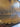 This amber colored cityscape features an abstract, stylized skyline looking out over a large body of water, with a rocky crag in the foreground and the setting sun(?) overhead. It is signed "R. Styles".