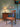 Wood base, fabric shade.