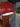 The metal shades are an olive green, red, and blue and appear to be painted with enamel paint.