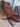 The upholstery is real quality leather. It is soft and supple. It has been dyed a Cherrywood color and light repairs have been made. The bentwood frame is in good condition, as well.
