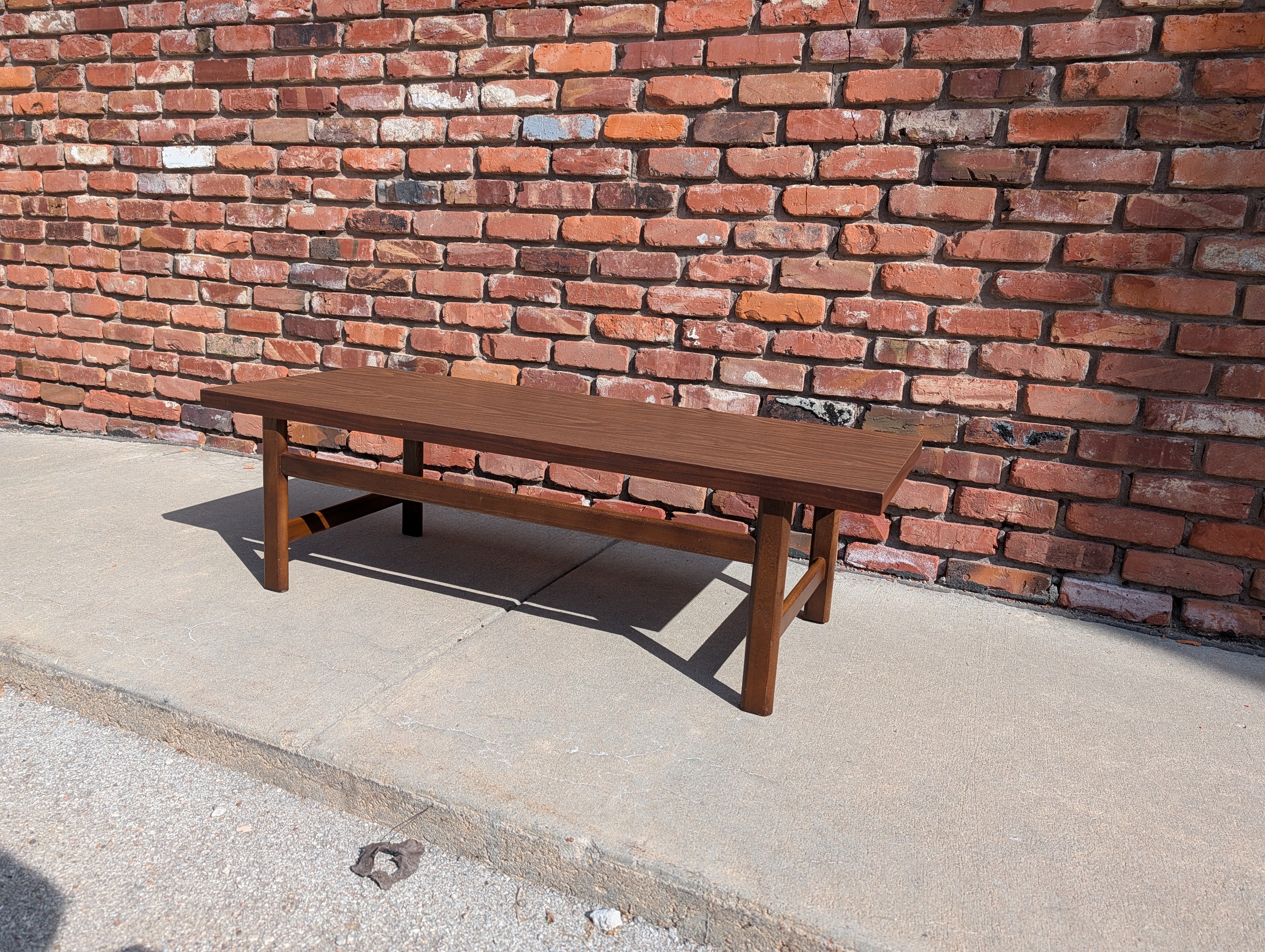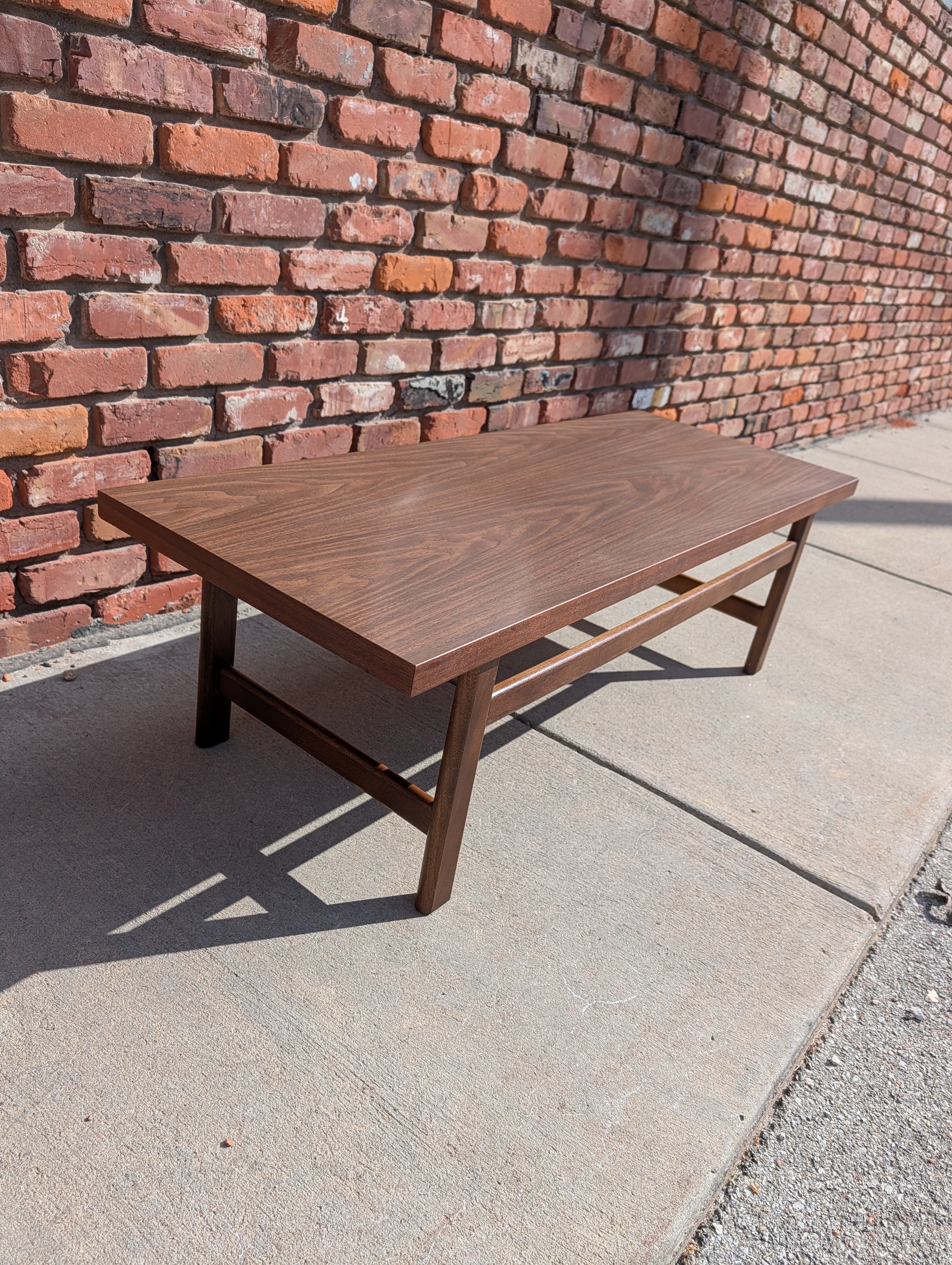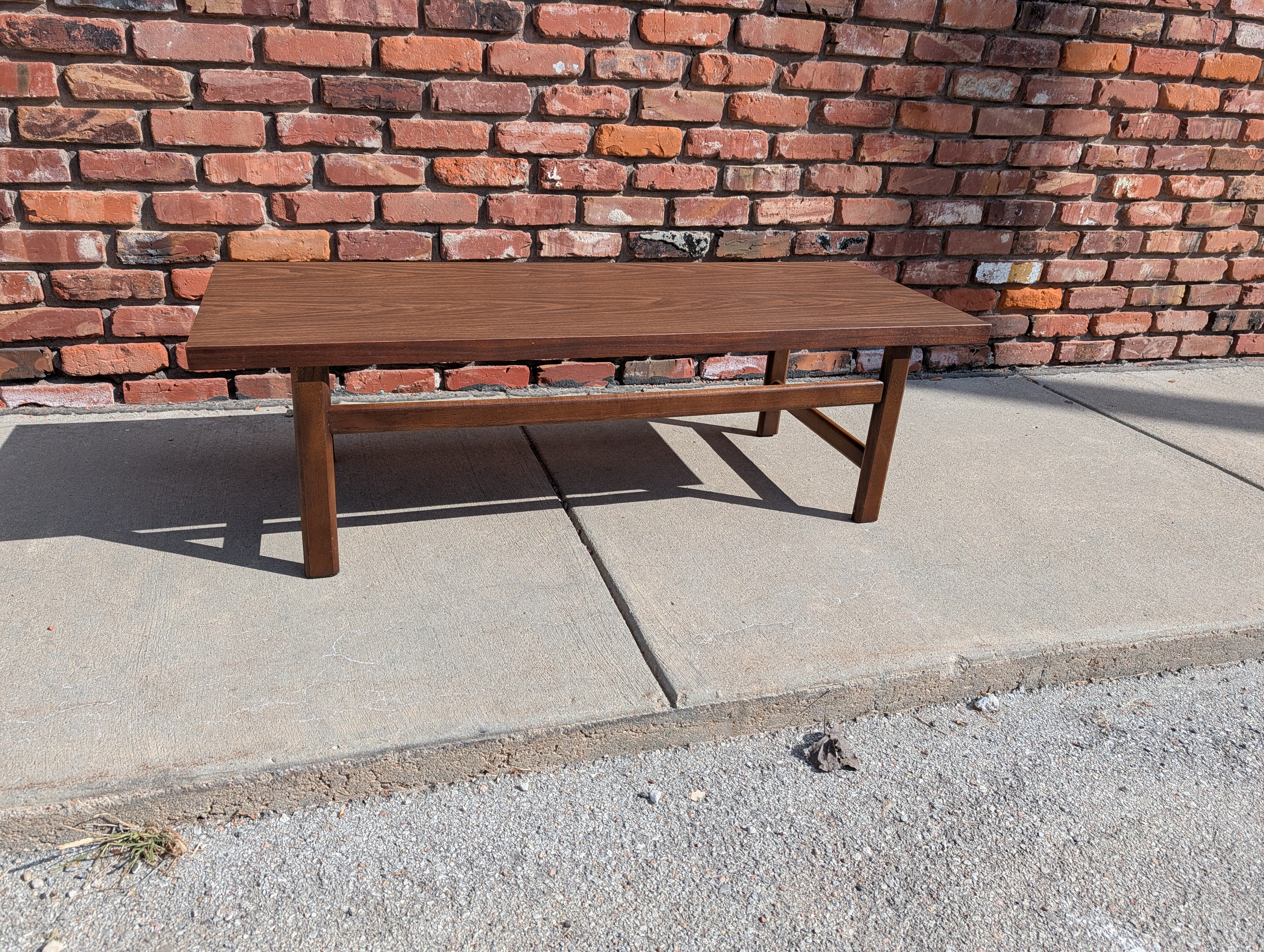 Classic, rectangular coffee table with a durable laminate top.  No notable flaws!