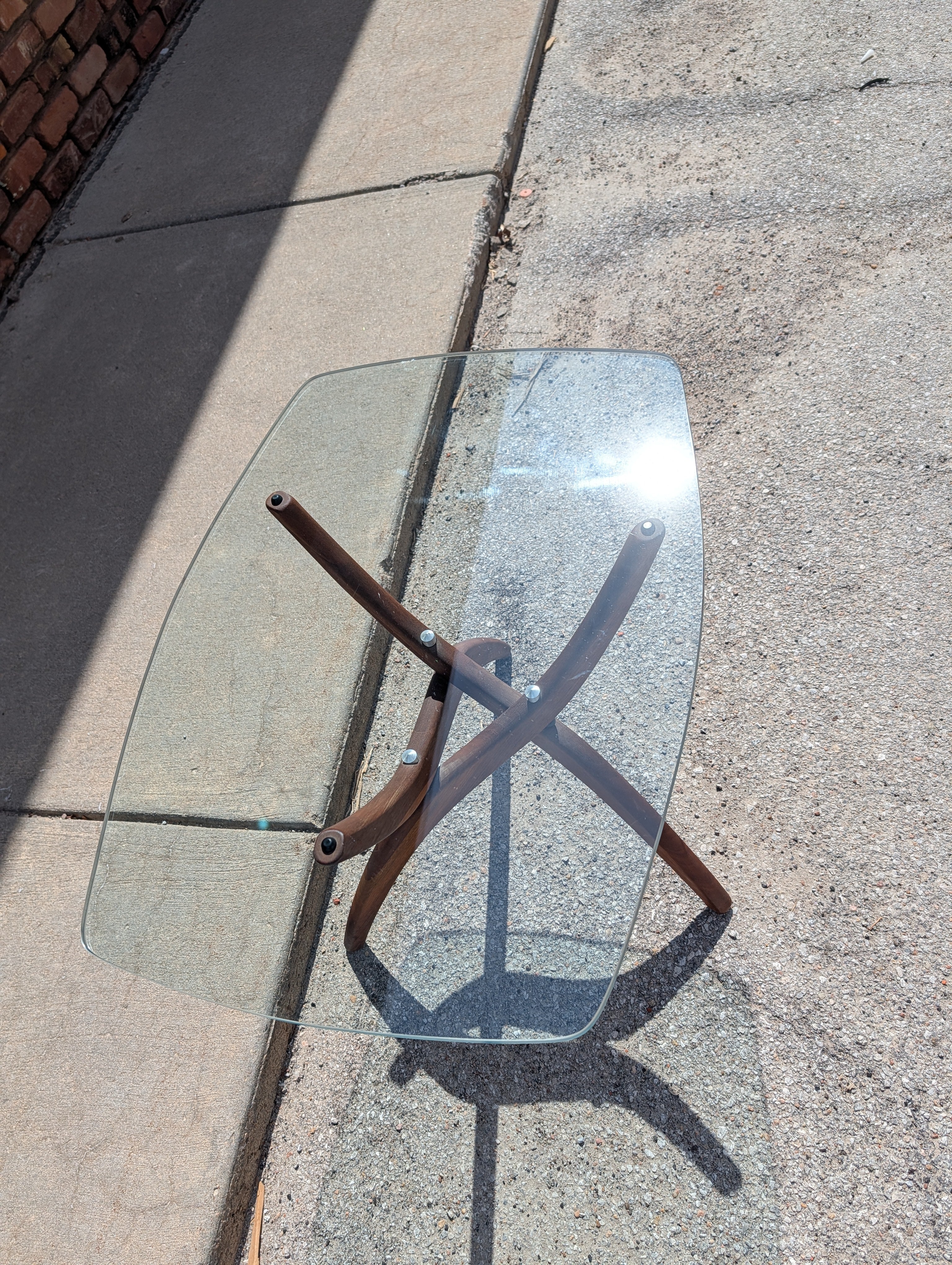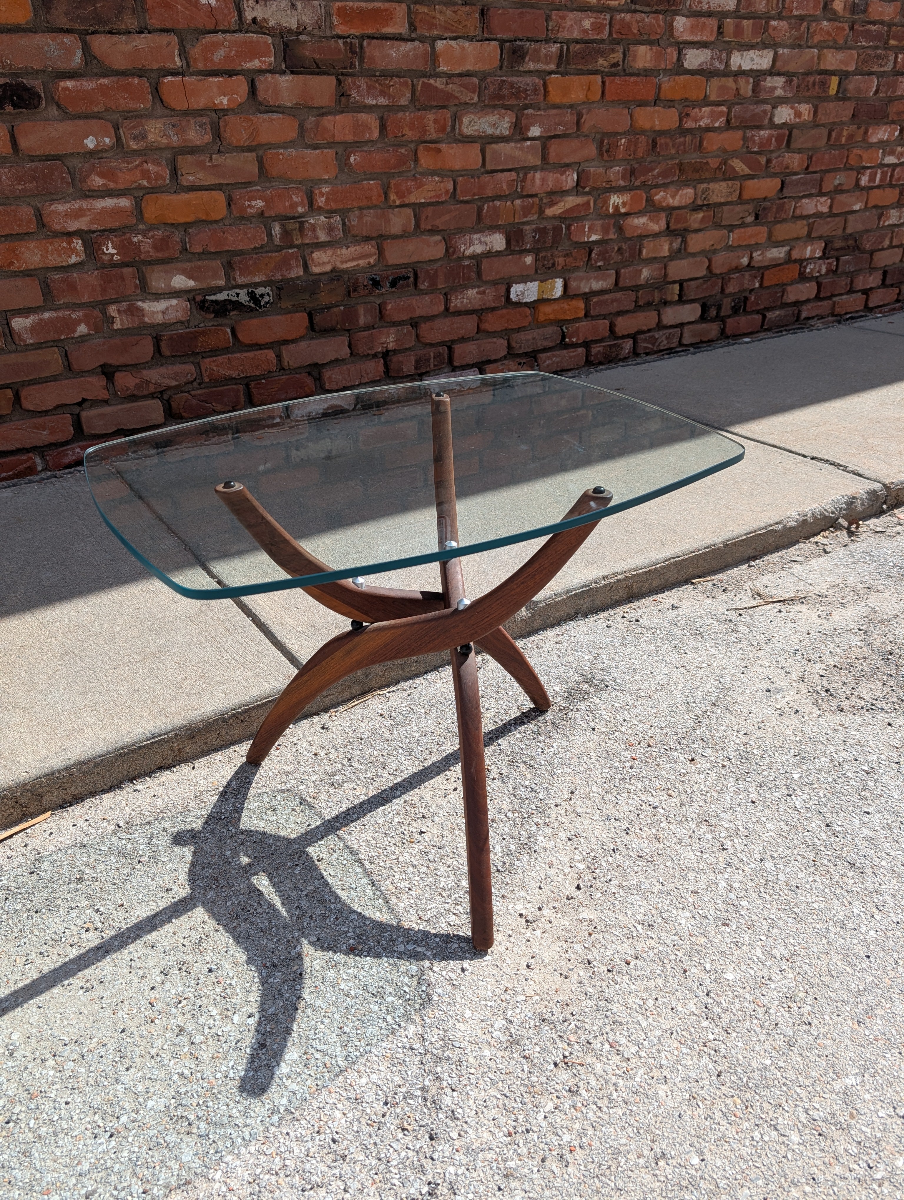 Forest Wilson Glass top End Table with Walnut Base