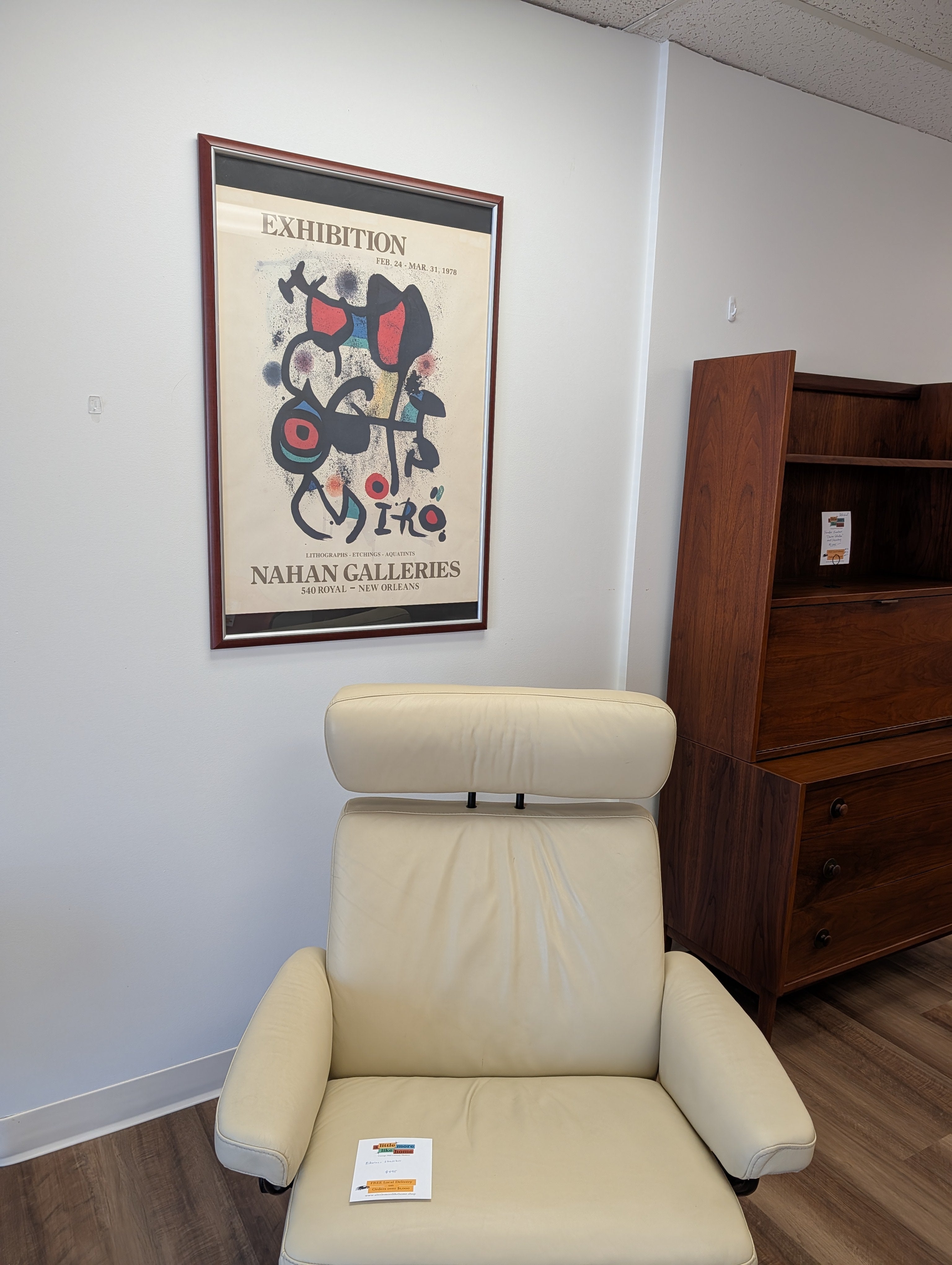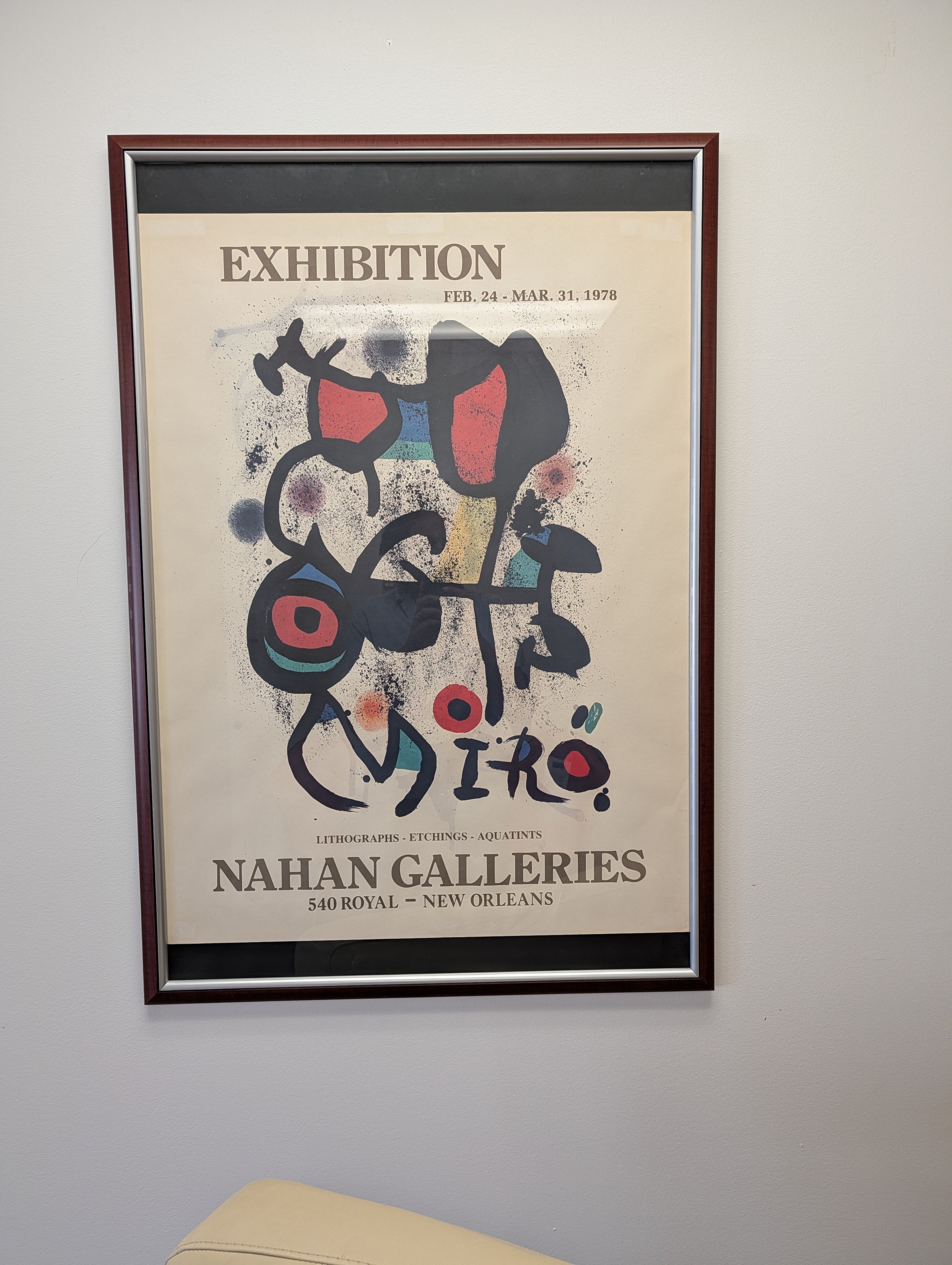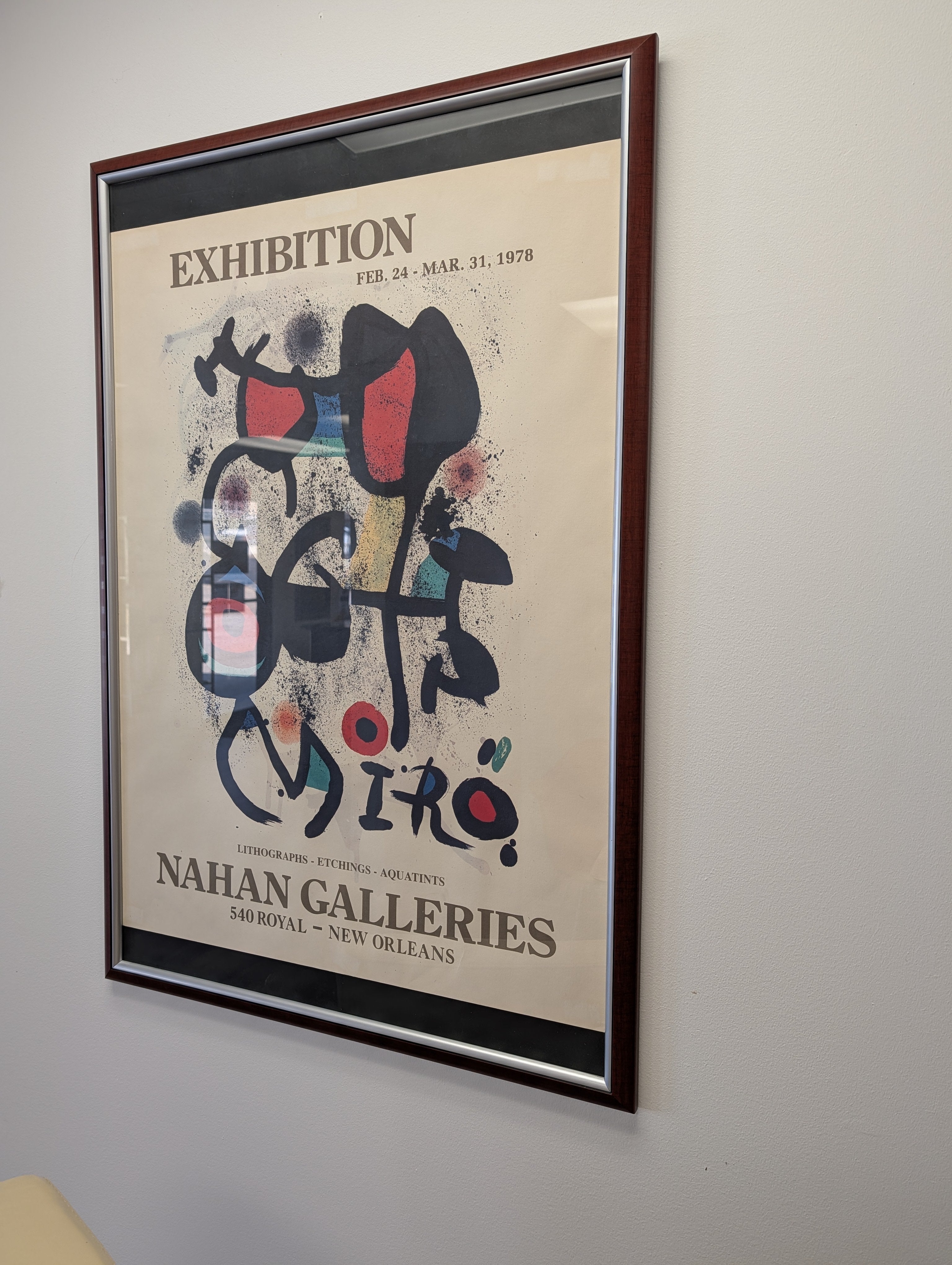 Are you a fan of Joan Miró?  He was a famous painter and sculptor, active during the mid century and known for his dream like abstract paintings.  Add this large Exhibition print to your space and spark conversation with your guests.  In a nice, sleek frame which hangs on a wire.