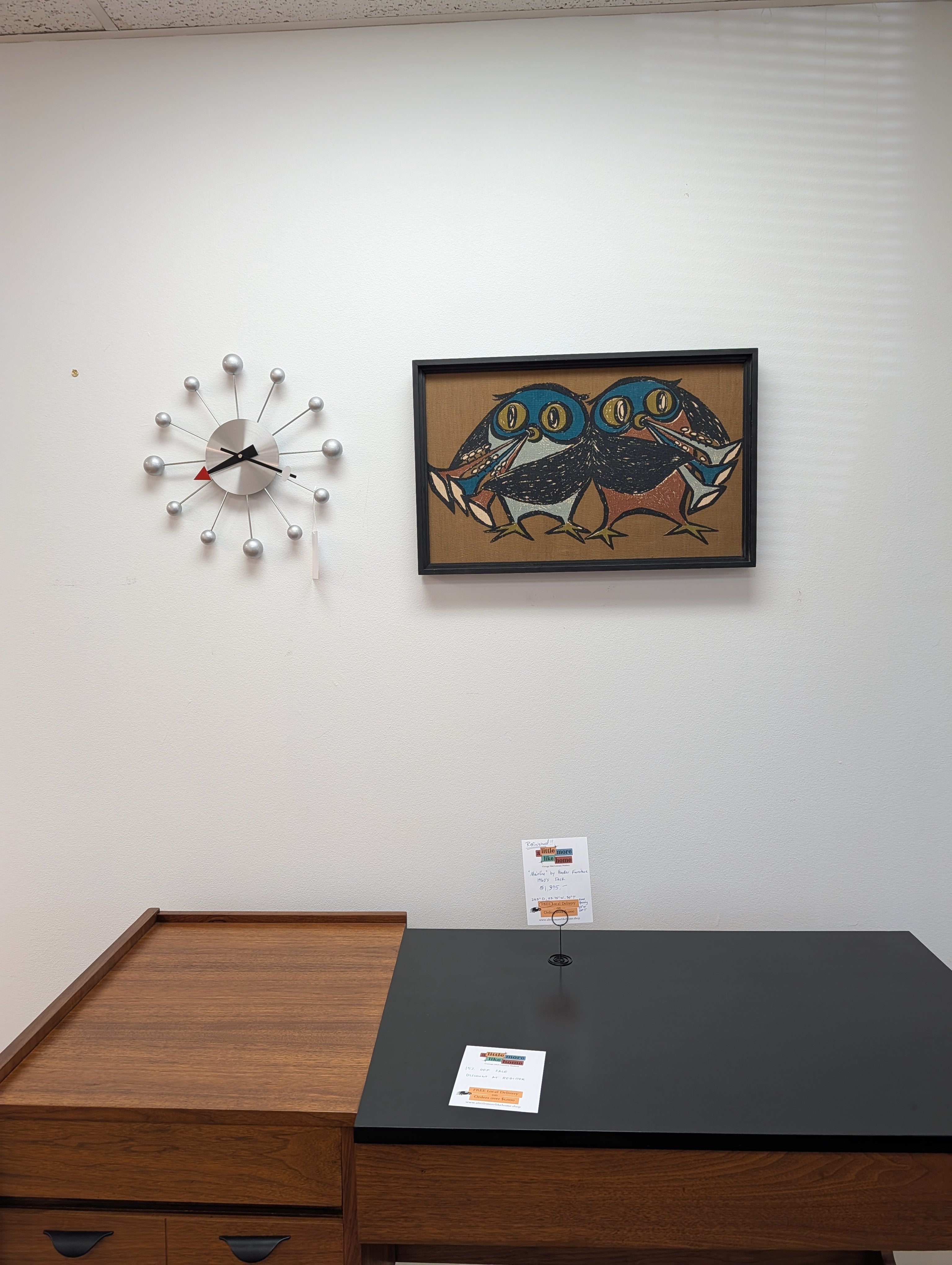 Sourcing this fun piece of vintage artwork was a no brainer. Owls playing trumpets?! Hilarious, but somehow classy. Maybe it's the muted colors that make this piece fit seamlessly in a more grown up environment, but fun enough to fit in with quirky decor, as well. All I can say is, you won't see this one again - if you like it, snag it or it might find its way into our "keep" stash.