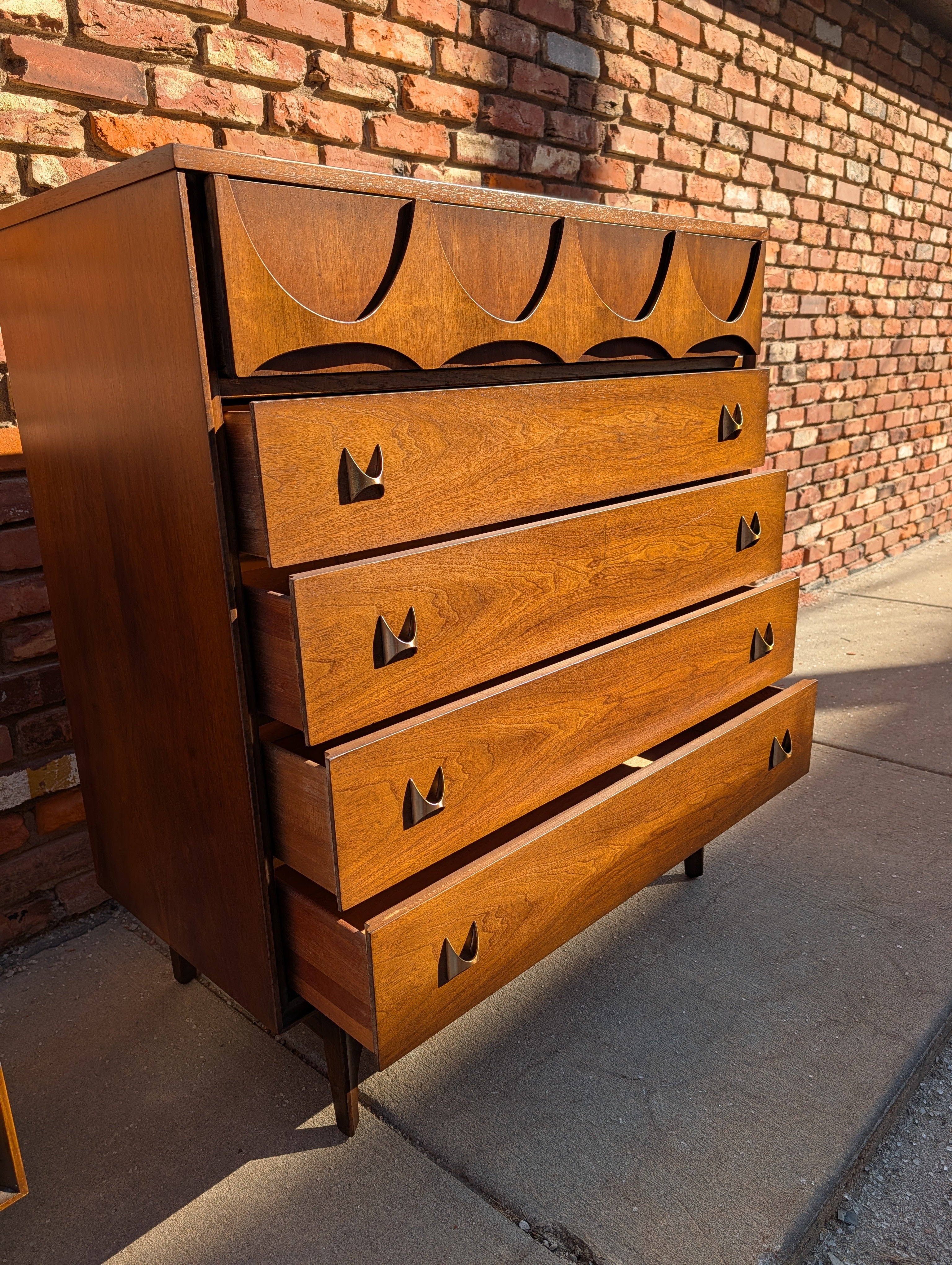 Refinished Mid Century Modern Broyhill "Brasilia" Five Drawer Tallboy Dresser