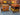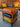 This is a fun set of retro 3 vinyl upholstered stacking footstools. We would describe the colors as yellow, dark brown, and red orange.